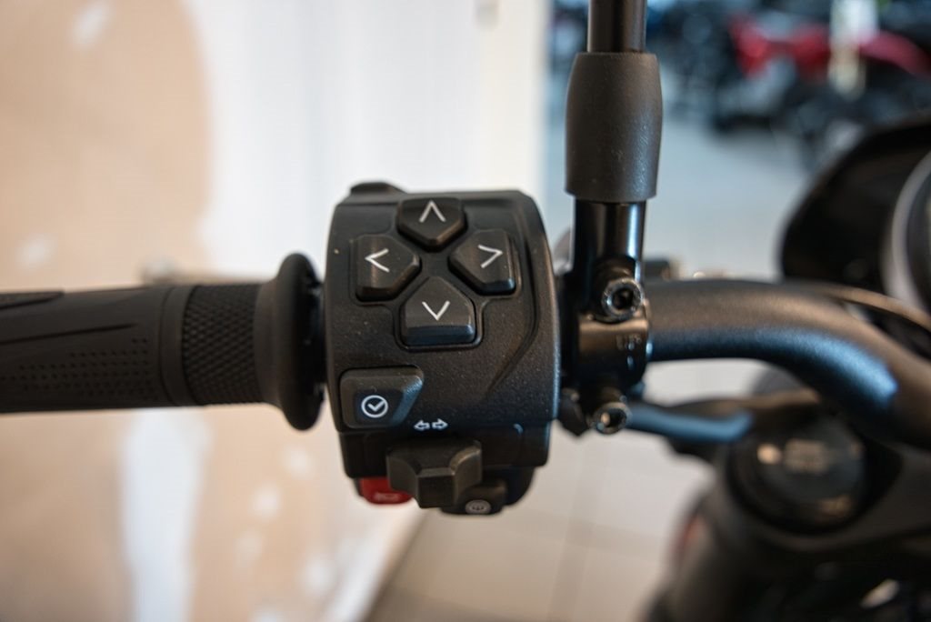 - Bremsen bestehen aus einer 310 mm großen Scheibe vorne und einer 255 mm großen Scheibe hinten, beide mit ABS.